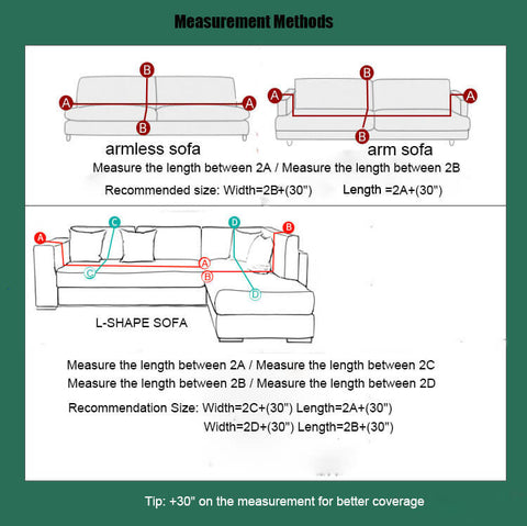 3 Seater: 70''x134'', fits for sofa from 65" to 85"
